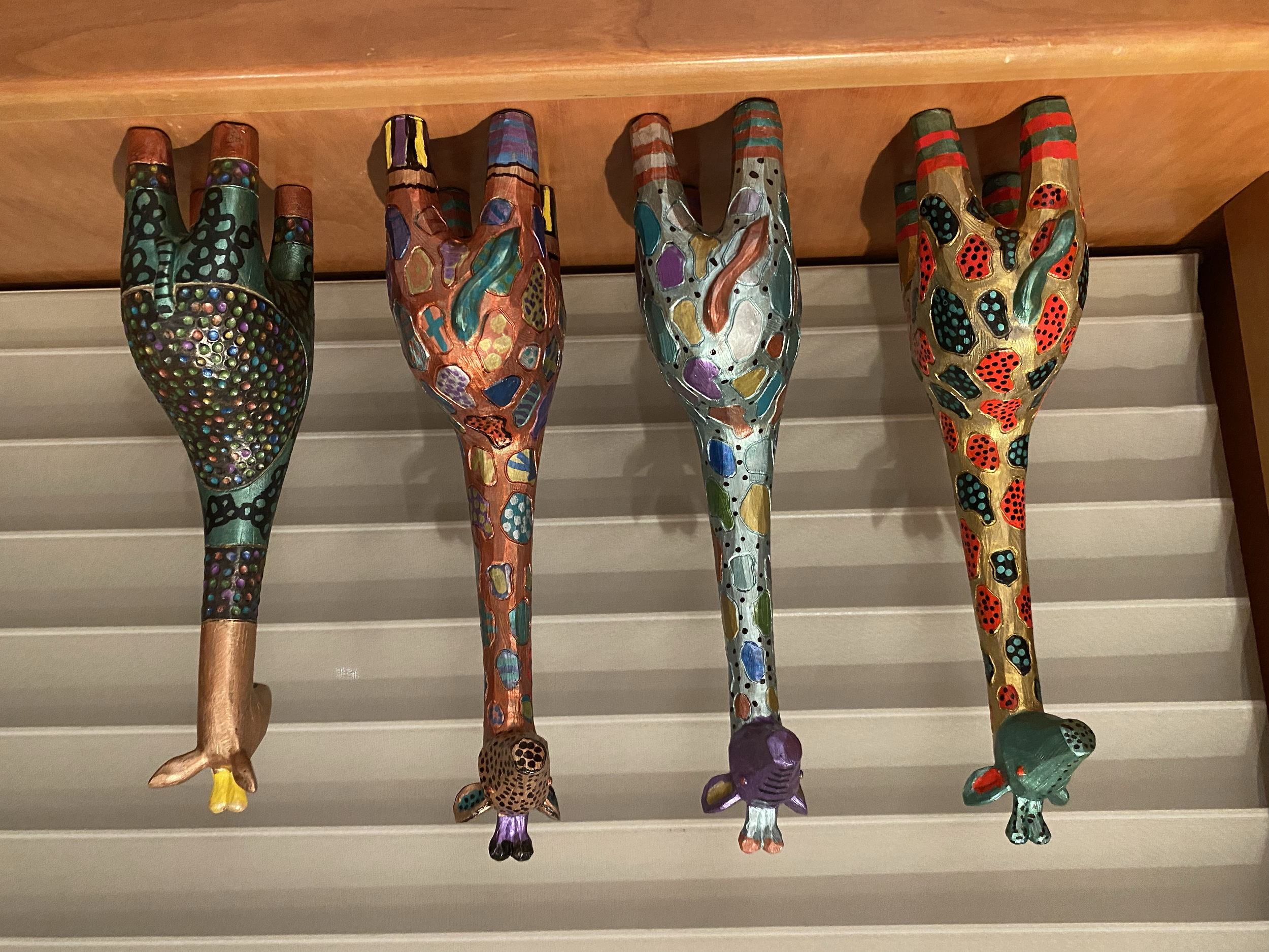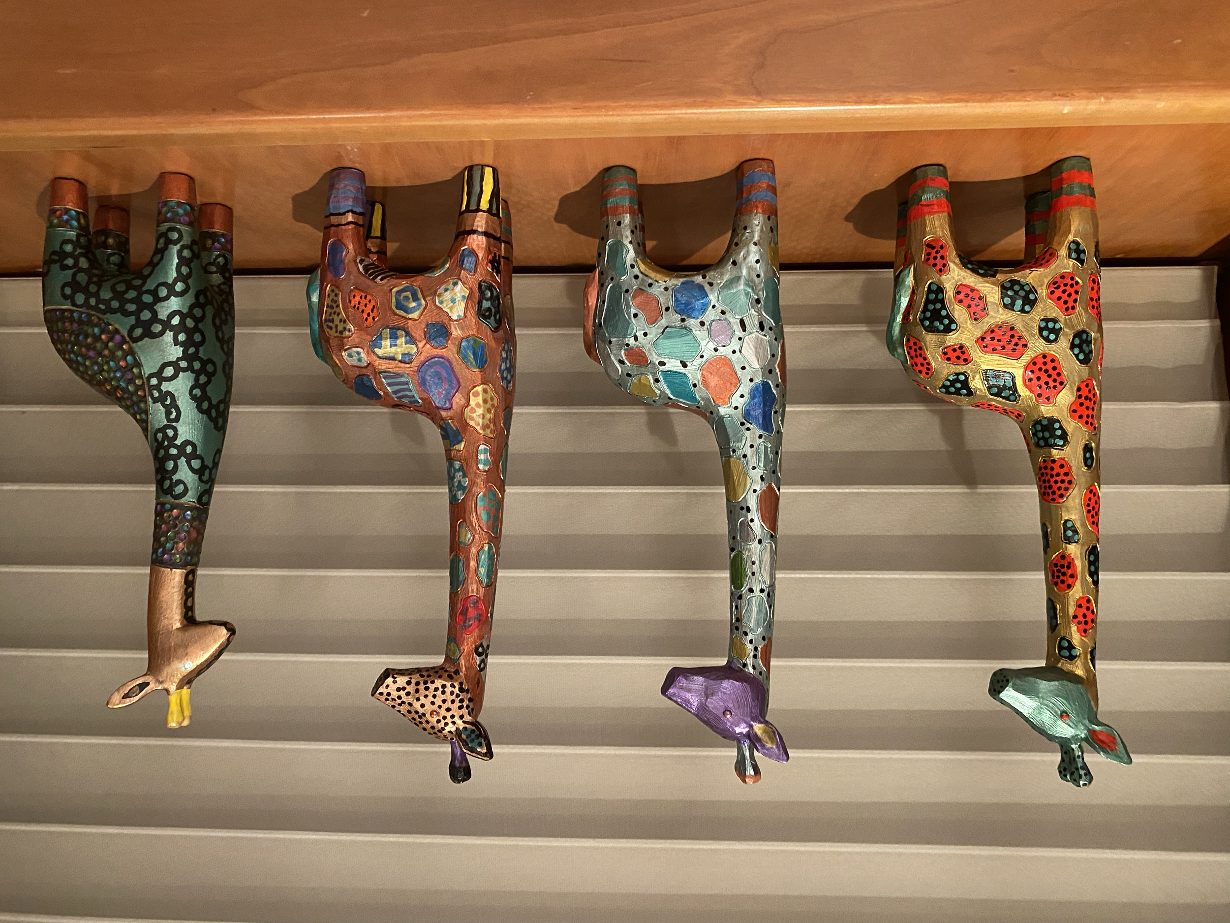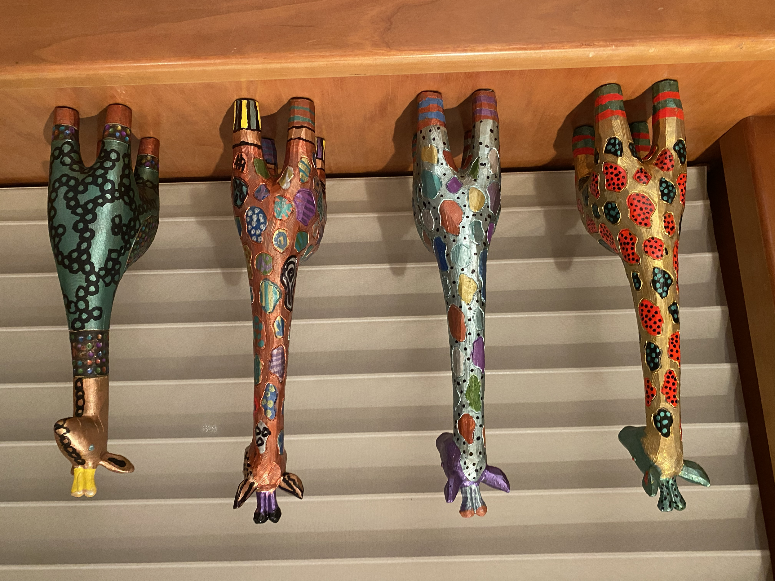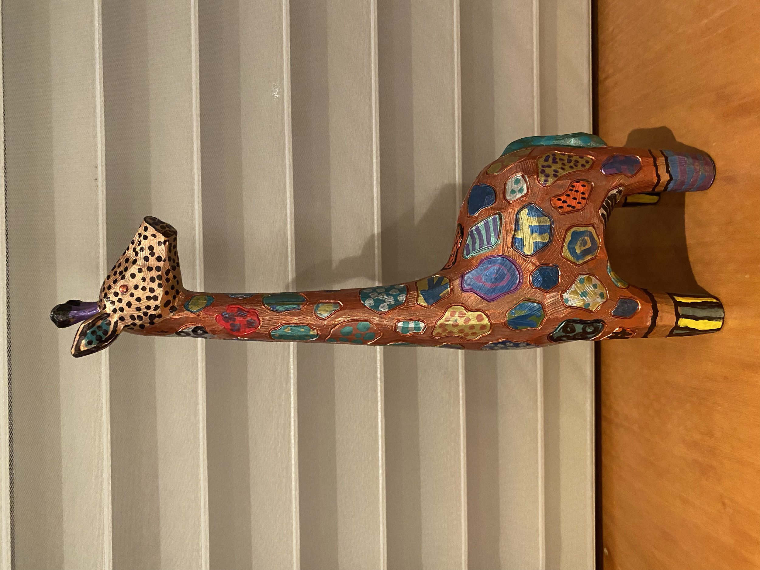 Giraffes (2023) Approx. 14 x 4 x 3” (height x width x depth)Metallic and acrylic paint over wood. Slide 1 Slide 1 (current slide) Slide 2 Slide 2 (current slide) Slide 3 Slide 3 (current slide) Slide 4 Slide 4 (current slide) Slide 5 Slide 5 (current slide) Slide 6 Slide 6 (current slide) Slide 7 Slide 7 (current slide)